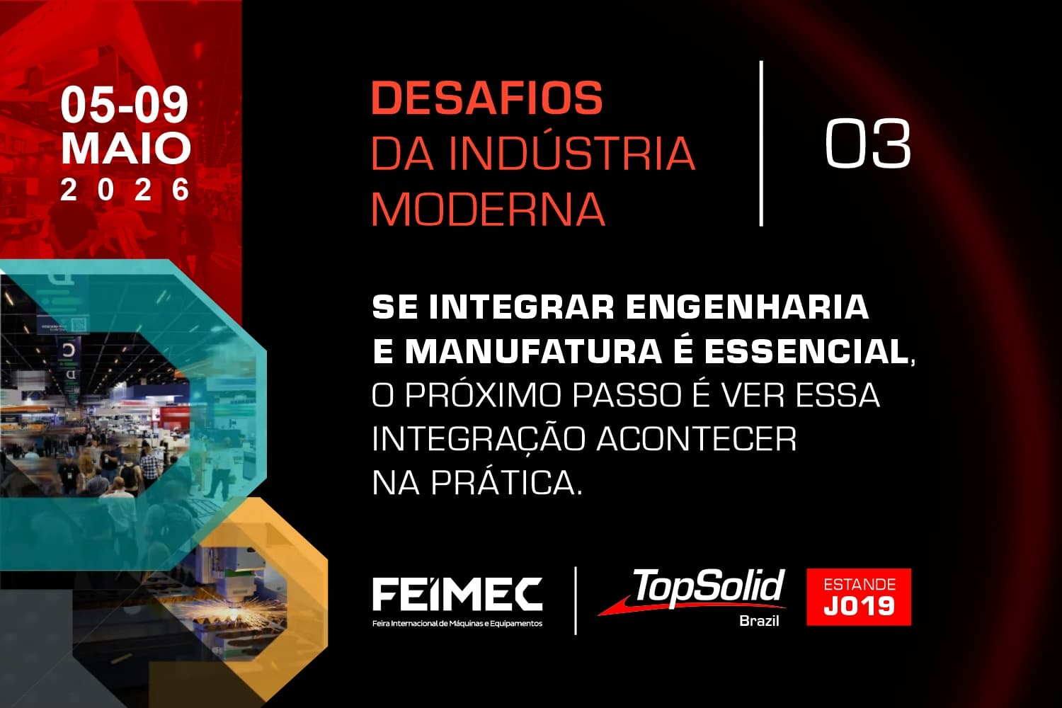 Como uma das empresas mais inovadoras do mercado de soluções automatizadas, a TopSolid mostrará durante a FEIMEC as aplicações práticas de engenharia digital integrada na indústria, mostrando como diferentes etapas da engenharia e da manufatura podem operar dentro de um fluxo contínuo de informações.